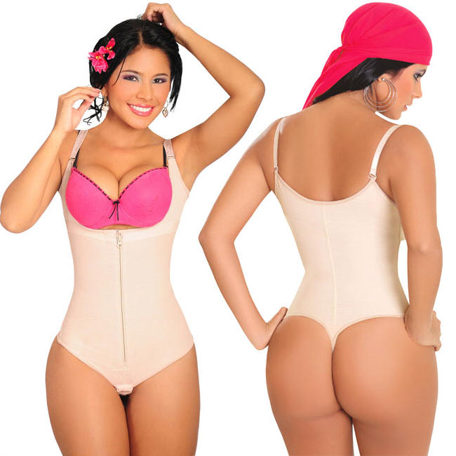 Characteristics: This sexy thong shaper will provide support to the bust and create a beautiful silhouette. It features a front zipper. Inside Eyelet Hooks Closure. Antiallergenic Cotton Lining Material. Reduces and maintains the firmness on your waist line. The power control provides you with solutions through silhouettes, according to your needs. some of the benefits you will find in our line are: abdomen shaping. Reinforced stitches. |