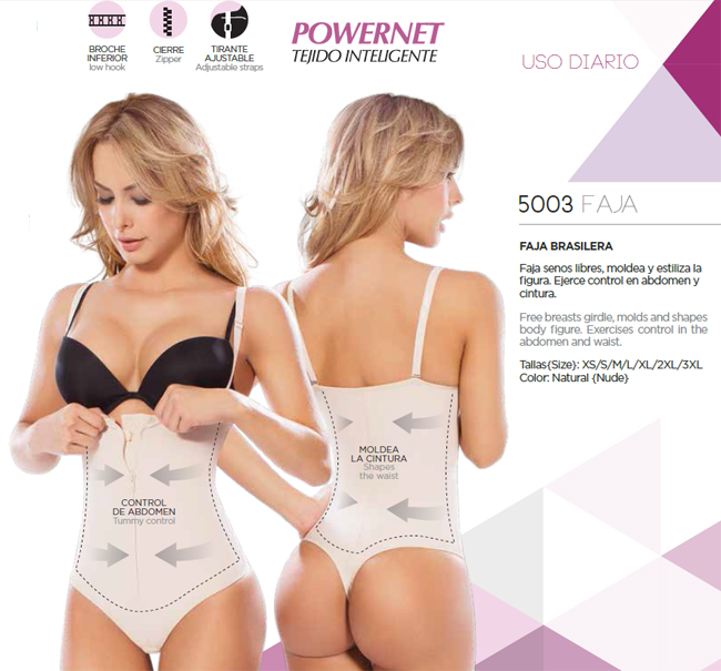 Description: BraS NOT included. Strapless Girdles. Made with high-compression. Powernet, Topless, Low-cut back, Removable straps, Thong bottom, body control powernet Shaping Girdle: Abdomen Control. Recommended: Daily use, Post-Lipo, post-partum and shaping girdle. Frontal zipper, inside eyelet hooks closure. Reduces and maintains the firmness on your abdomen. Many women wear this garment on a daily basis to tone and instantly reduce cm's on their waist, hips and legs while in use