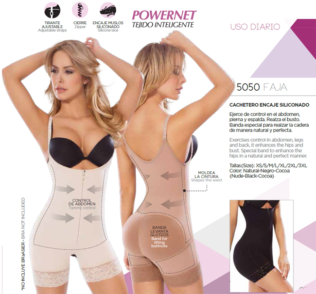 Description:BraS NOT included. Boyshort control powernet shaping girdle: abdomen control, back support, lower tummy support. Adjustable straps, lifts bust. Recommended: Daily Use, Post-Lipo, Post-Partum, Tummy Tuck, Shaping Girdle. Mini-Short Derriere Enhancer Laced Design. Frontal Zipper, Inside Eyelet Hooks Closure. Reduces and maintains the firmness on your abdomen. Corrects and helps your posture. Enhances the gluteus, busts, and shapes your silhouette body. Many women wear this garment on a daily basis to tone and instantly reduce cm's on their waist, hips and legs while in use. Open Crotch convenient for bathroom use |