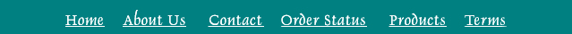 HOME     ABOUT US     CONTACT     ORDER STATUS     PRODUCTS     TERMS